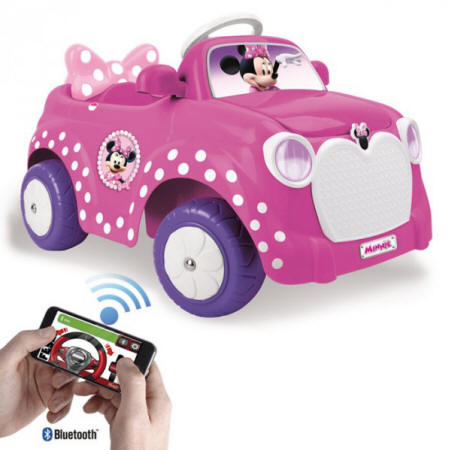 Un gracioso coche con pegatinas de Minnie Mouse que se controla desde el movil