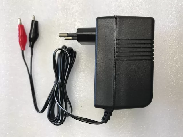 Versión del cargador para todos los coches eléctricos para niños 24V de 2 pinzas. Es muy importante no sobrecalentar el cargador, no lo deje enchufado a la red más de 12 horas.